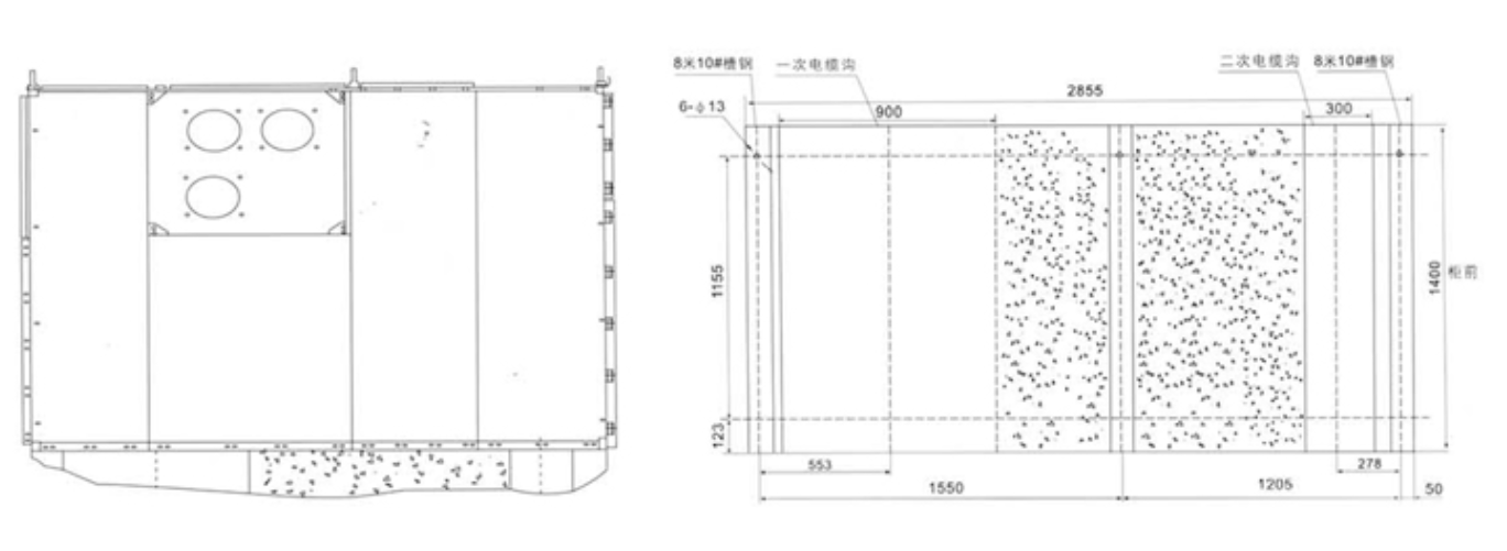 The shell and partition of the Switchgear are bolted together with cold-rolled steel plates after being processed and bent by CNC machine tools. Therefore, the assembled Switchgear can ensure the uniformity of the structural dimensions. The Switchgear is divided into a circuit breaker room, a main busbar room, a cable room and a relay instrument room, and each part is separated by a grounded metal partition.