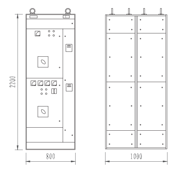 | Fig.3 Overall dimensions of control cabinet and capacitor cabinet |